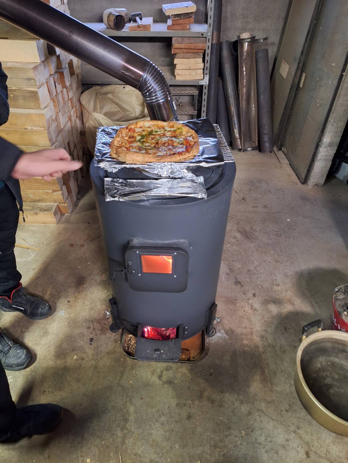 薪ストーブの上ではピザを焼いたり